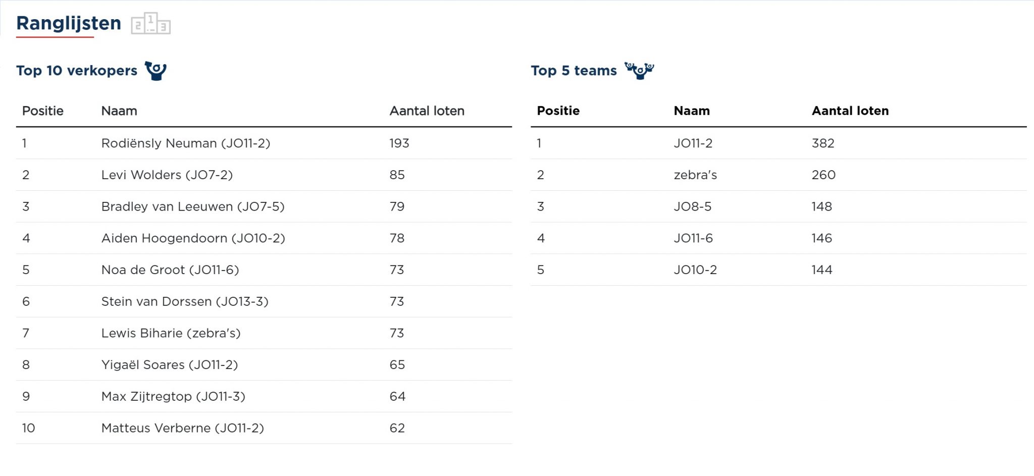 🥈 Levi Wolders (JO7-2) – 85 loten