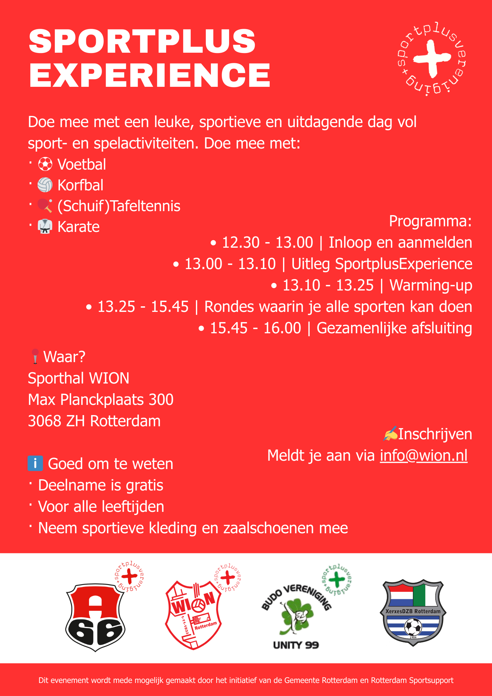 Het is herfstvakantie, maar dat betekent niet dat er niet gesport kan worden. Samen met de andere Sportclubs uit Prins Alexander kan je aanstaande woensdagmiddag de hele middag gratis vier verschillende sporten beoefenen. Zie de flyers. Voetbal is er een van!